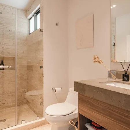 חלק מהחדרים כוללים מרפסת. הדירה דירות 70'S Experience In Tulum With Pool View סופרת 2 חדרי שינה. הדירה מורכבת מ2 חדרי אמבטיה.