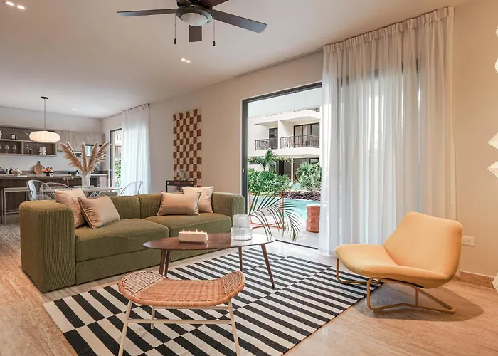 プ-ルを提供する100m^2の70'S Experience In Tulum With Pool Viewアパ-トメントは,ドス・アグアス公園から歩いて25分くらいに位置しています. この寝室2室のアパ-トではWi-Fiを利用できますし,車でお越しのお客様のために駐車場もあります.